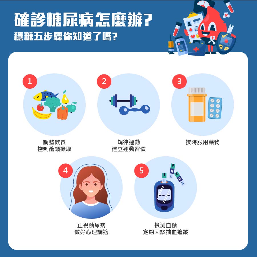 ► 確診糖尿病怎麼辦? 穩糖五步驟你知道了嗎?